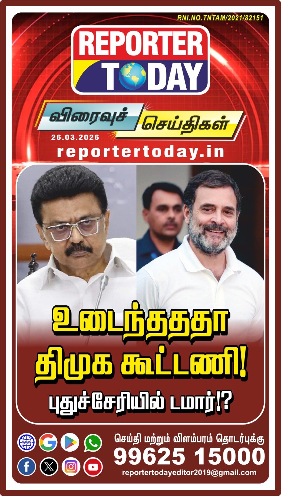 உடைந்தததா திமுக கூட்டணி! புதுச்சேரியில் டமார்!? Post navigation சிரித்துக்கொண்டே அழுகின்றோம்” அர்ஜுனராஜ்! மதிமுகவில் மல்லுக்கட்டு!