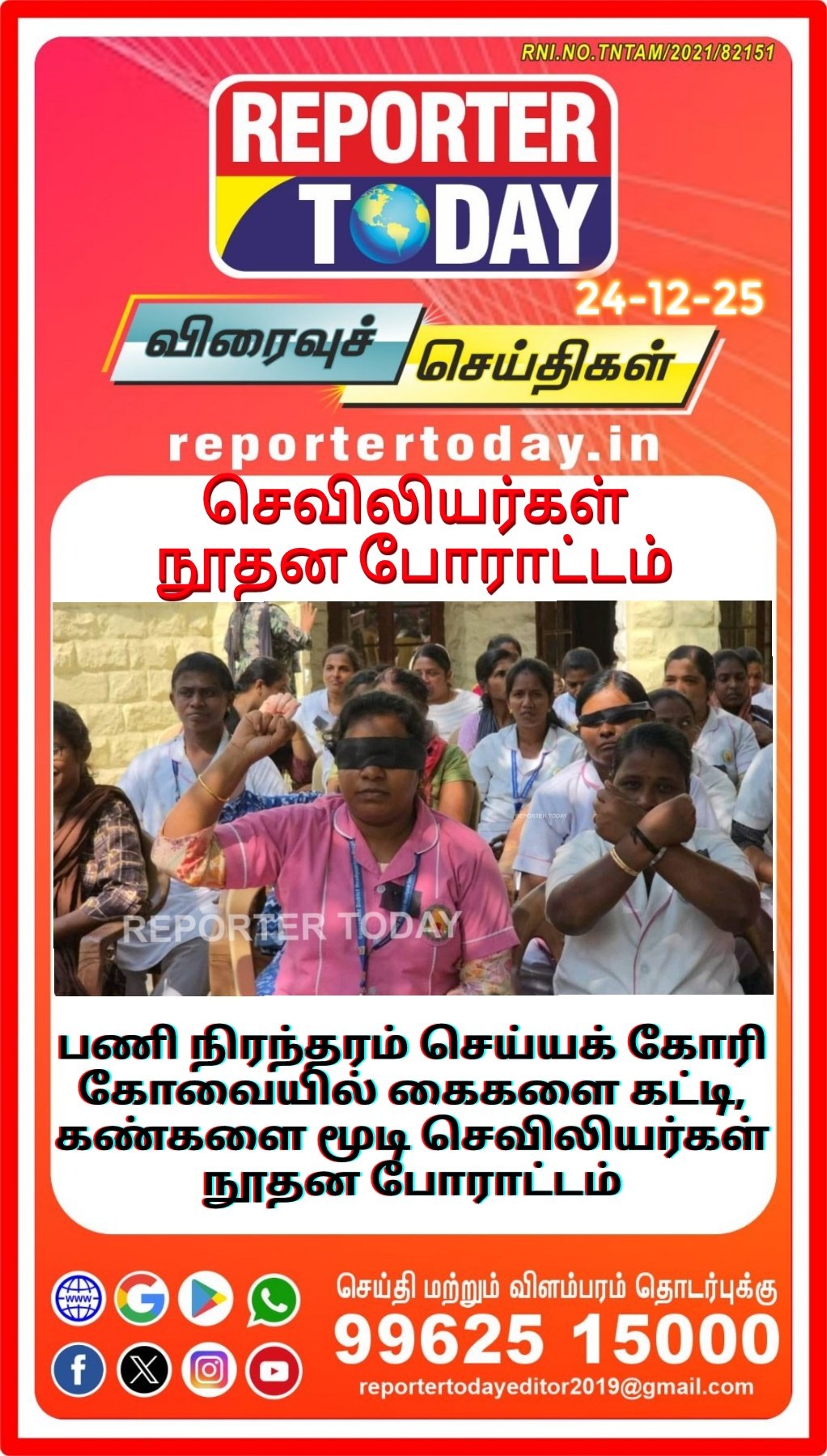 தி.மு.க அரசு தேர்தல் வாக்குறுதியில் கூறிய தொகுப்பூதிய செவிலியர்களை பணி நிரந்தரம் செய்ய வேண்டும், எம்.ஆர்.பி செவிலியர்களுக்கு ஊதியத்துடன் கூடிய மகப்பேறு விடுப்பு வழங்க வேண்டும் உள்ளிட்ட பல்வேறு கோரிக்கைகளை முன்வைத்து ஆர்ப்பாட்டம் மேற்கொண்டு வருகின்றனர். சென்னையில் ஆர்ப்பாட்டத்தில் ஈடுப்பட்ட செவிலியர்கள் கைது செய்யபட்டது பெரும் கண்டனங்களுக்கும் உள்ளானதை அடுத்து தமிழ்நாடு முழுவதும் பல்வேறு மாவட்டங்களில் எம்.ஆர்.பி செவிலியர்கள் தொடர் போராட்டங்களை முன்னெடுத்து வருகின்றனர்.