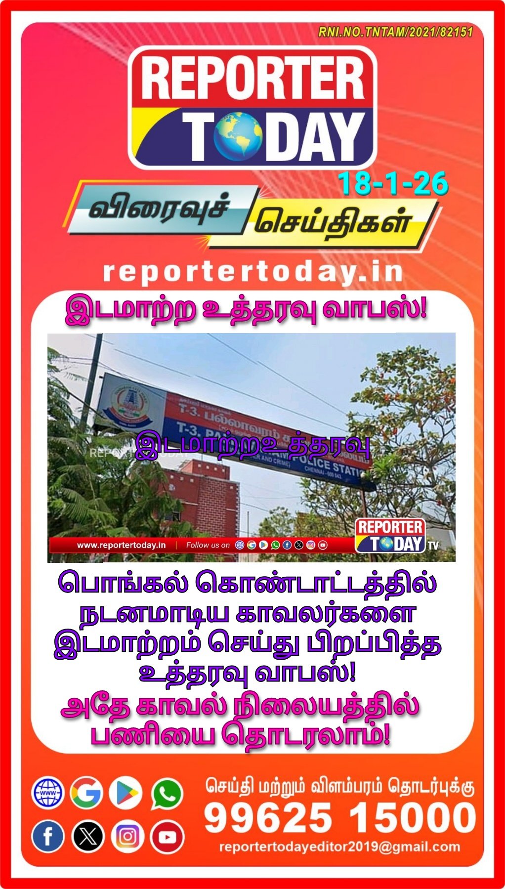 பொங்கல் கொண்டாட்டத்தில் நடனமாடிய காவலர்களை இடமாற்றம் செய்து பிறப்பித்த உத்தரவு வாபஸ்!