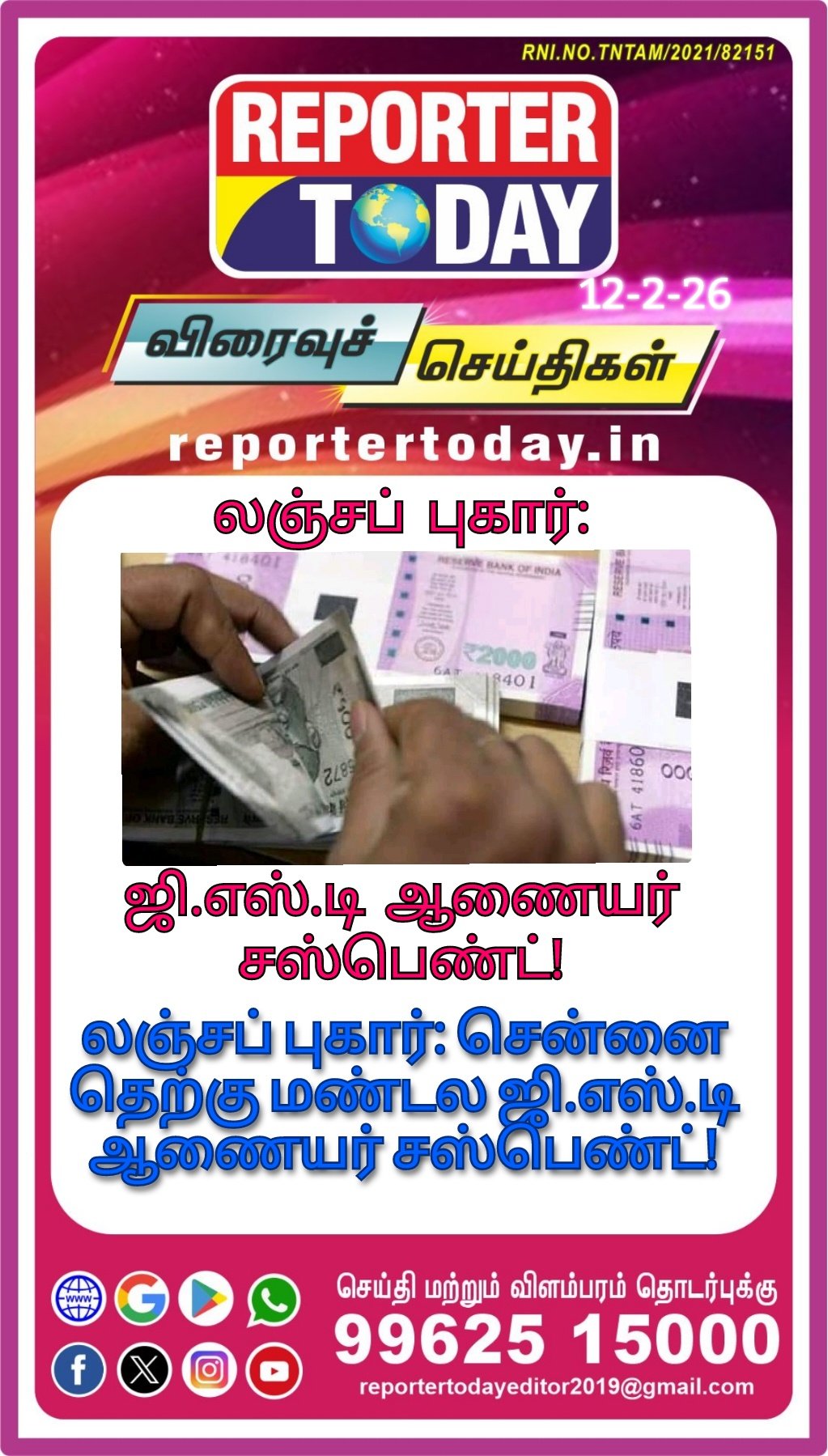 லஞ்சப் புகார்: சென்னை தெற்கு மண்டல ஜி.எஸ்.டி ஆணையர் சஸ்பெண்ட்!