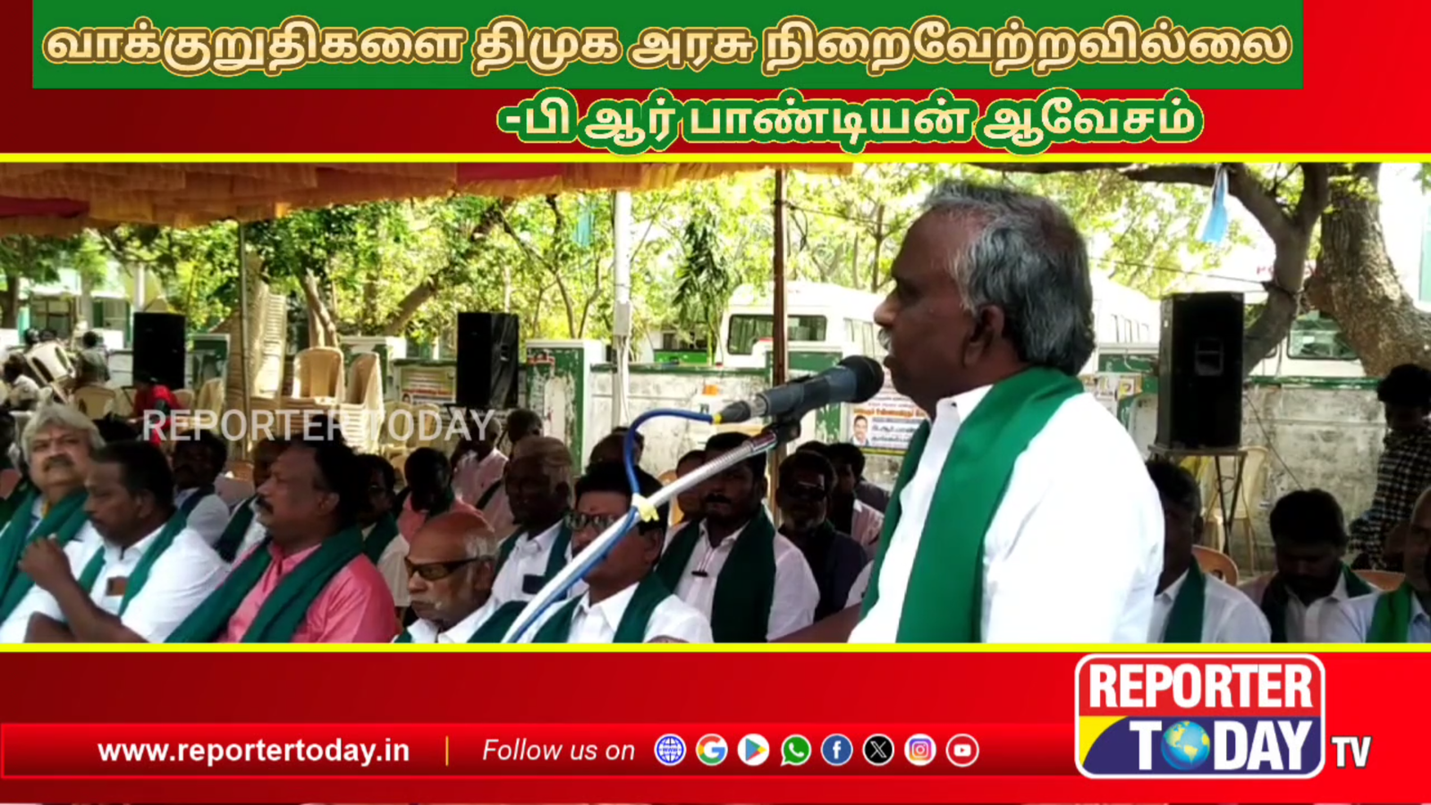 விவசாயிகளுக்கு திமுக அரசு கொடுத்த வாக்குறுதிகளை நிறைவேற்றவில்லை- பி. ஆர். பாண்டியன் குற்றச்சாட்டு Post navigation கோரிக்கைகளை நிறைவேற்றக் கோரி கோஷமிட்ட விவசாயிகள் வரும் தேர்தலில் யாருக்கு வாக்களிப்பது என்பதை விரைவில் அறிவிப்போம் பி.ஆர். பாண்டியன் பேட்டி
