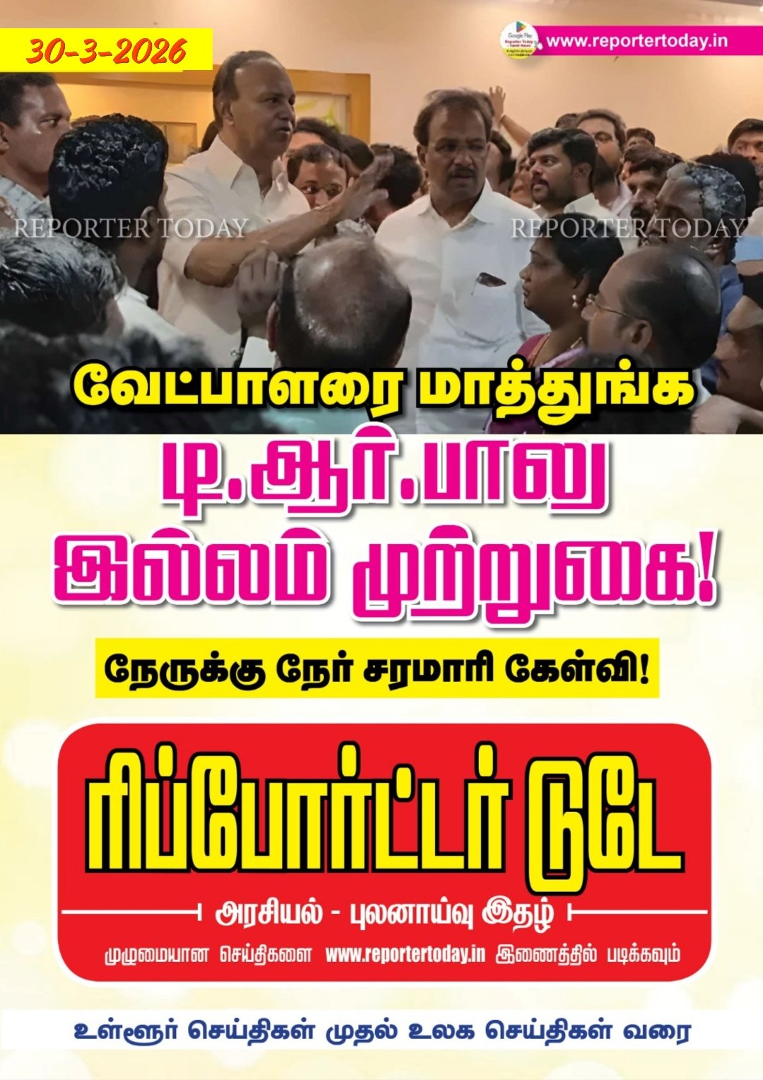 வேட்பாளரை மாற்றும்படி டி ஆர் பாலு இல்லம் முற்றுகை! Post navigation விஜய் வேட்புமனு தாக்கல்! பெரம்பூர் தொகுதியில் தமிழக வெற்றி கழக தலைவர் விஜய் வேட்புமனு தாக்கல் செய்தார். மன்னார்குடியில் மண்ணை கவ்வும் டிஆர்பி ராஜா