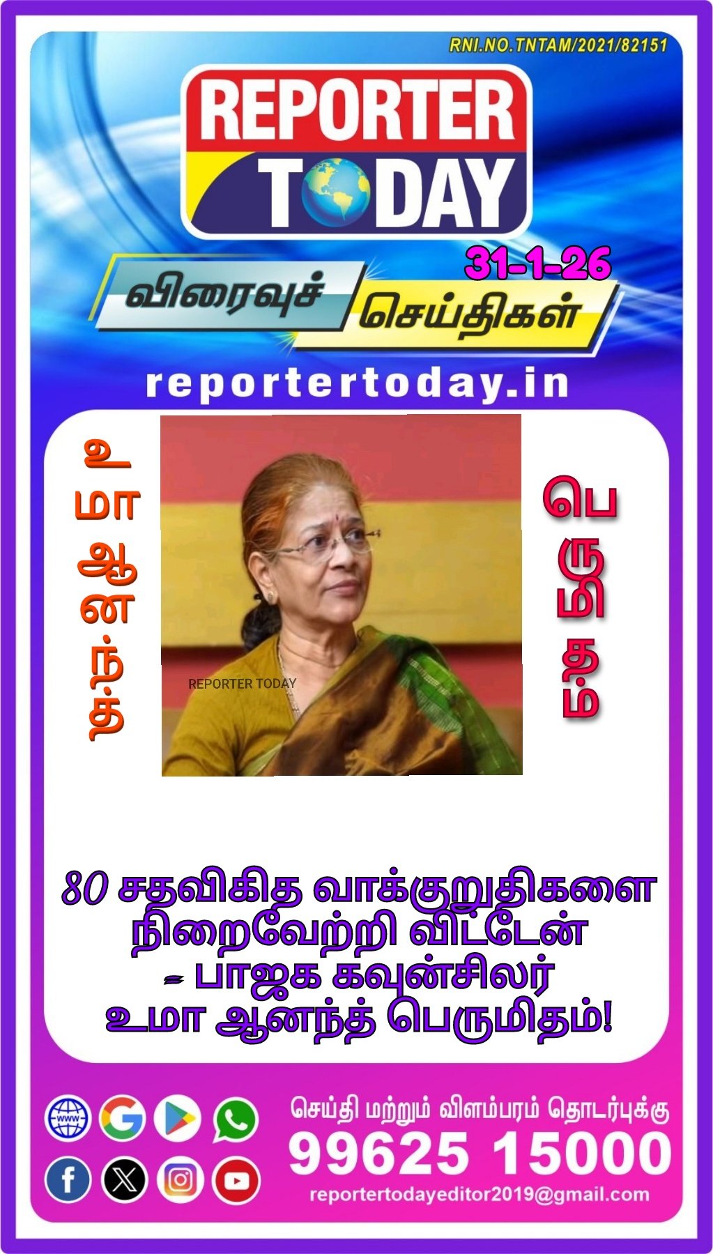 அடுத்த மாத இறுதியில், நான் மாமன்ற உறுப்பினர் பதவியேற்று 4 ஆண்டுகள் முடிய உள்ளது. அனைவருக்கும் என் மனமார்ந்த நன்றிகள் இந்த 4 ஆண்டுகளில் நான் கொடுத்த வாக்குறுதிகளில் 80 சதவிகித வாக்குறுதிகளை நிறைவேற்றி விட்டேன்.